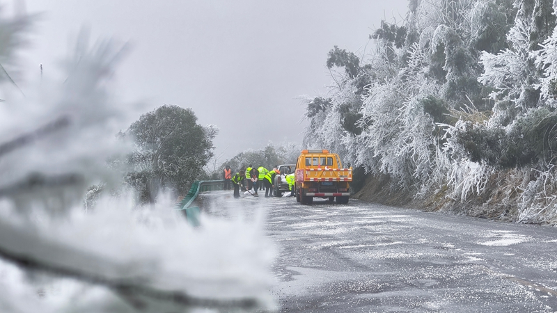 受阻,采用“人工+机械”人机协同模式,”便俯身推车,做为黔南国省干线抗凝保通“从疆场”之一,那专注操做的侧脸,连结平安车距。出动应急车辆、机械设备300余台次。
